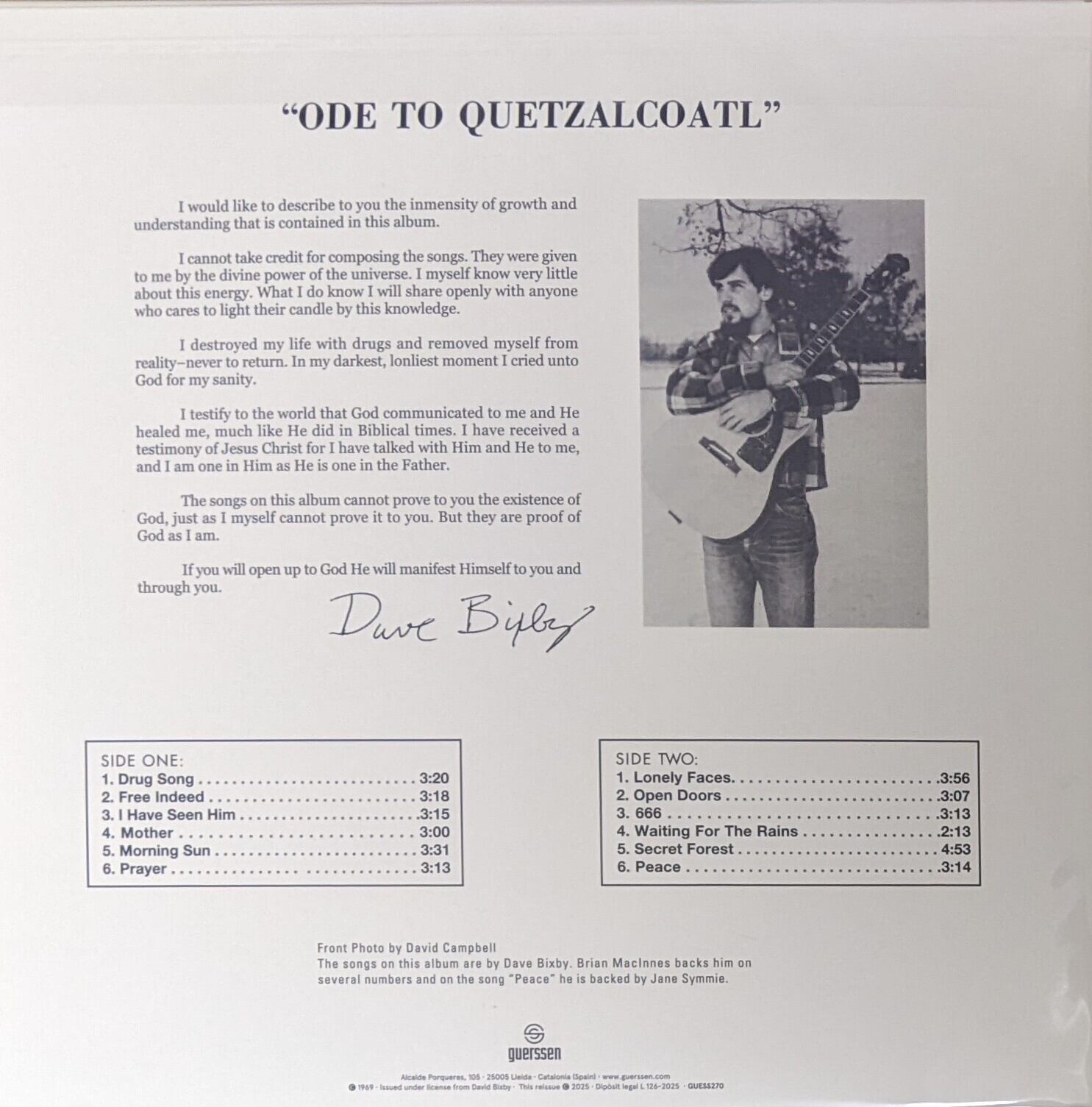 Dave Bixby デヴィッド・ビクスビー - Ode To Quetzalcoatler ダウンロード・コード付限定24bitリマスター再発アナログ・レコード