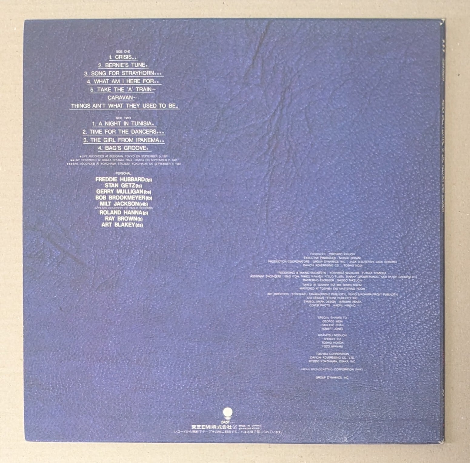 Track A1, A4, A5, B3: Live recorded at Osaka Festival Hall, Osaka on September 2, 1981
