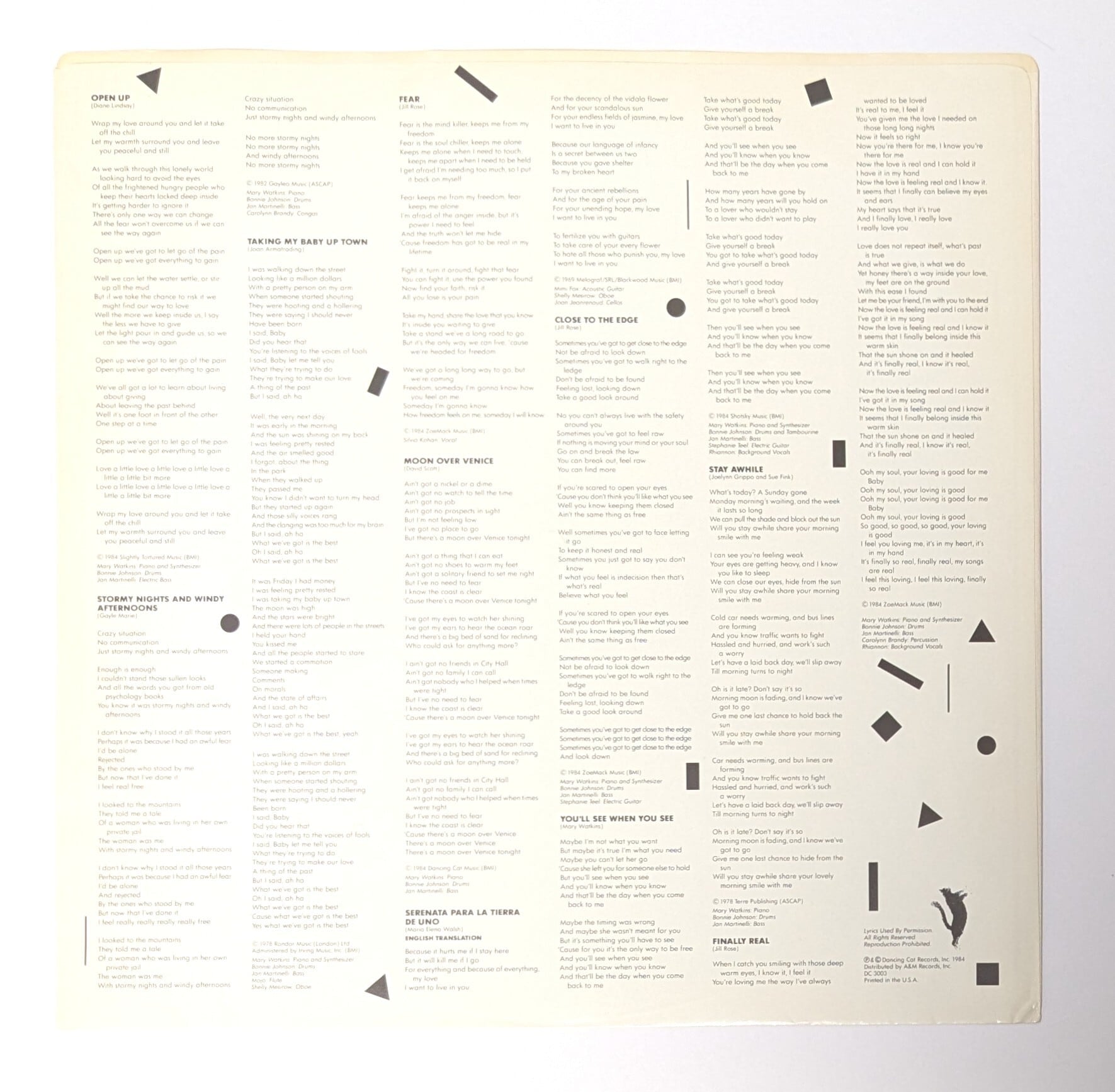 Recorded January, 1984 at Different Fur Recording Studios, San Francisco.