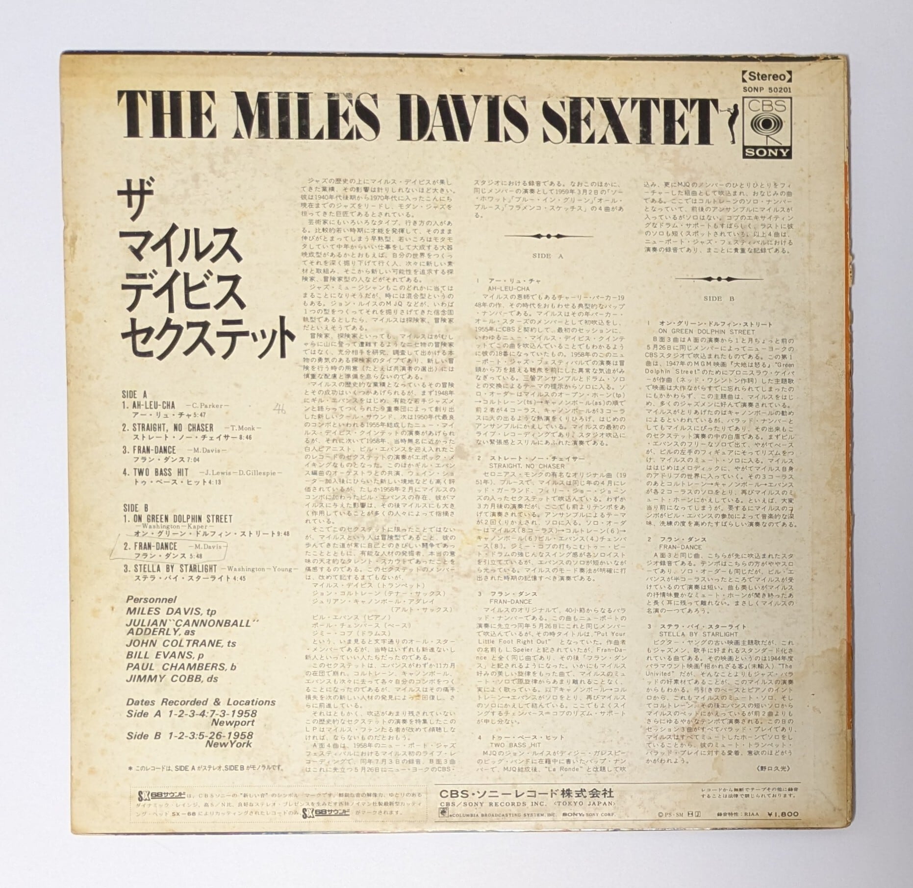 The Miles Davis マイルス・デイヴィス Sextet JPNオリジナル中古アナログ・レコード