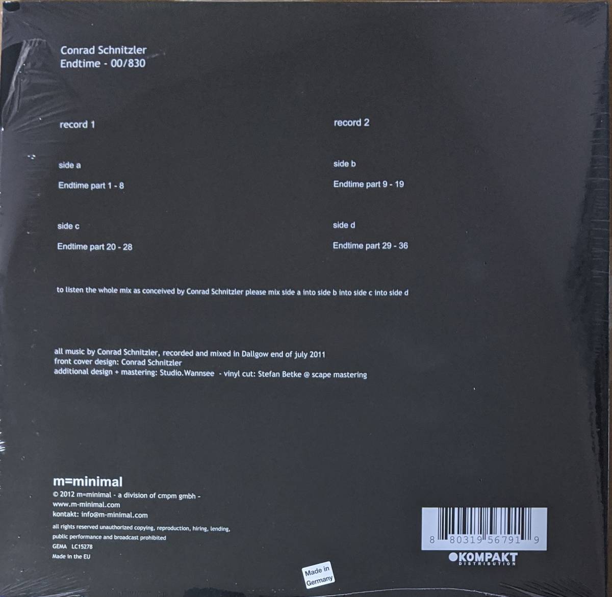 Conrad Schnitzler コンラッド・シュニッツラー - 00/830 Endtime 限定二枚組アナログ・レコード