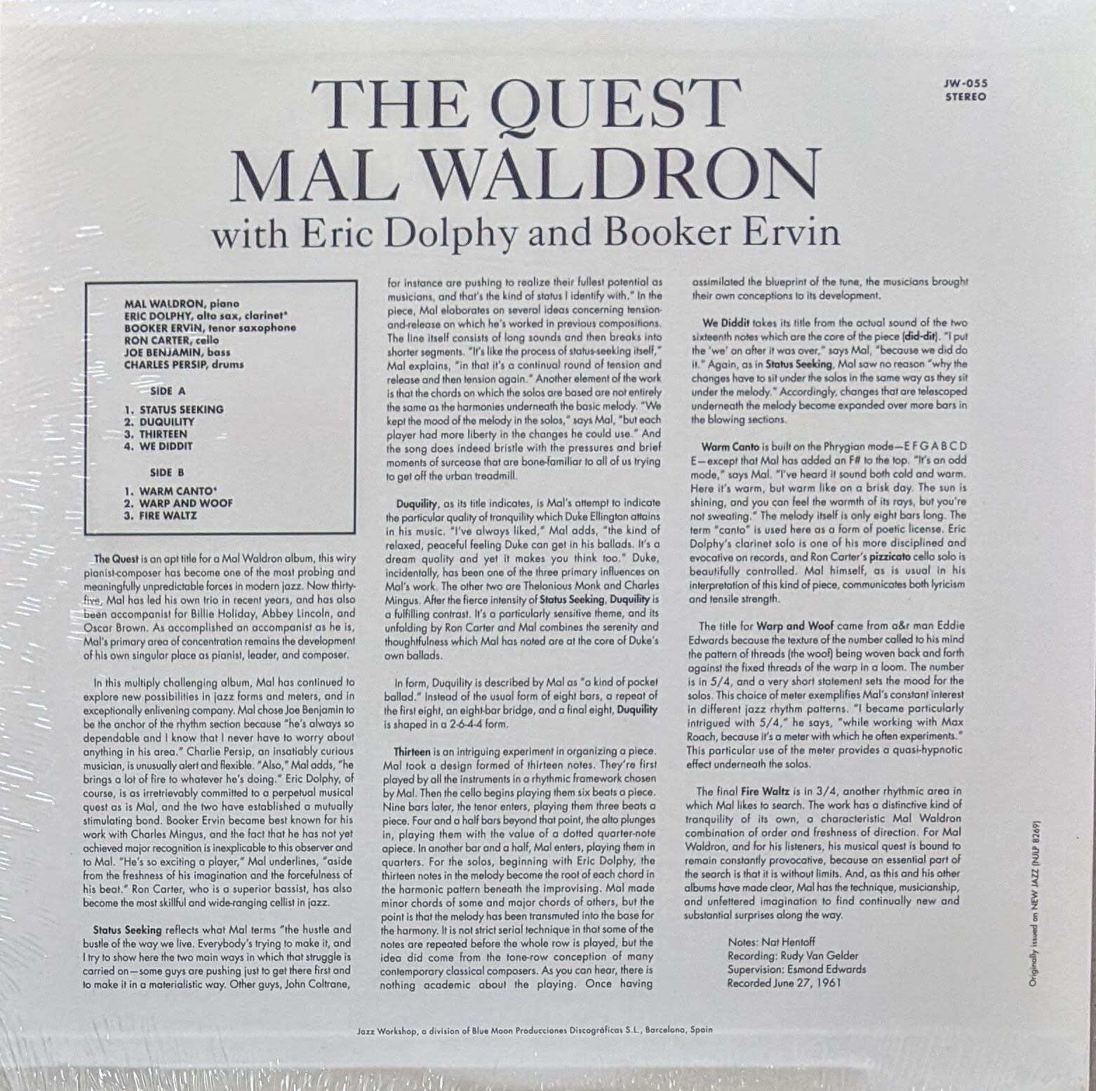 Mal Waldron マル・ウォルドロン With Eric Dolphy エリック・ドルフィー And Booker Ervin - The Quest 限定再発アナログ・レコード | Music Finders