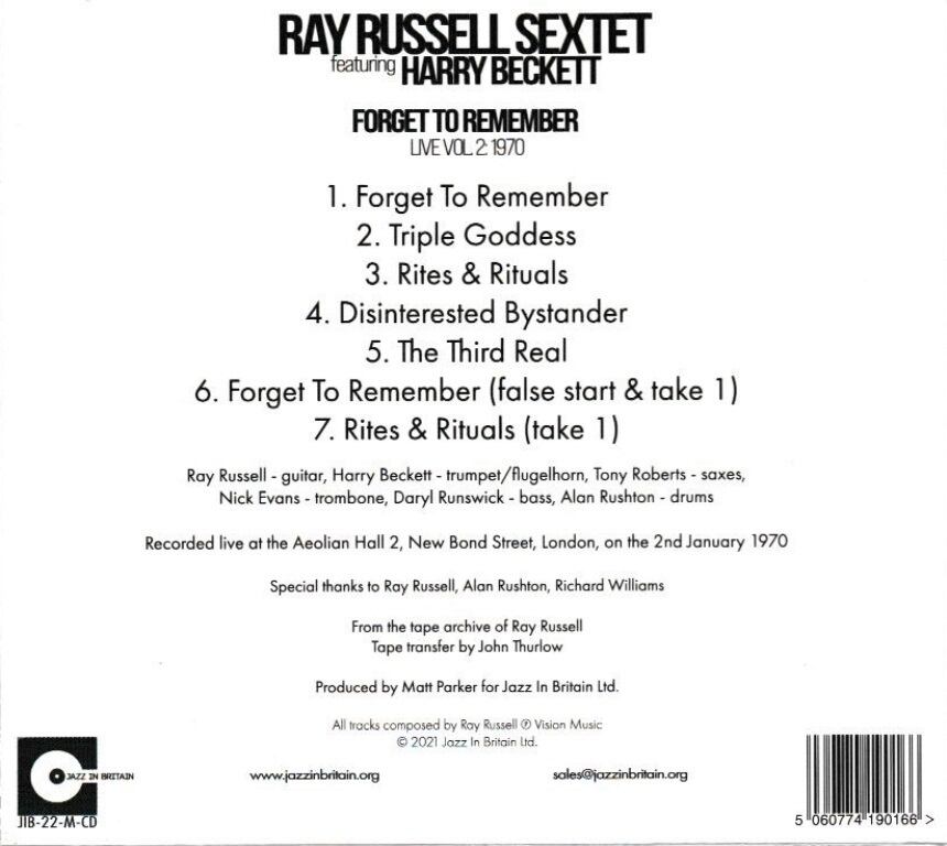 Ray Russell レイ・ラッセル Sextet Featuring Harry Beckett ハリー・ベケット - Forget To Remember 500枚限定CD | Music Finders