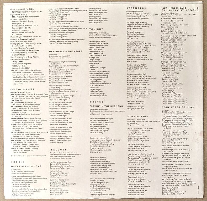 Backing Vocals Marcy Levy (Tracks: A1, A3, A4, B3, B4), Nancy Wilson (Tracks: A1, A4, B1, B2,)