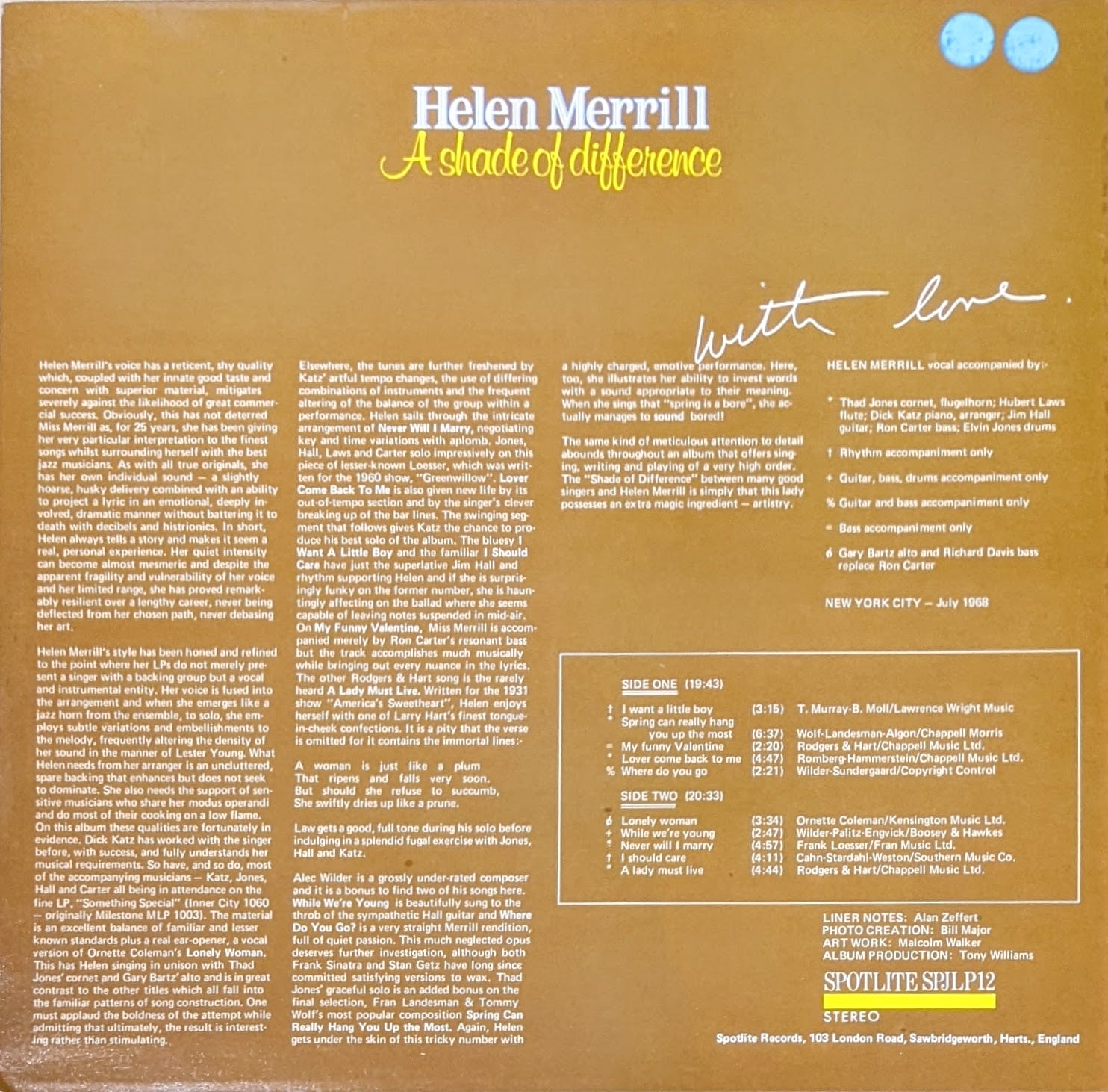 Recorded at Plaza Sound Studios, NYC in July 1968.