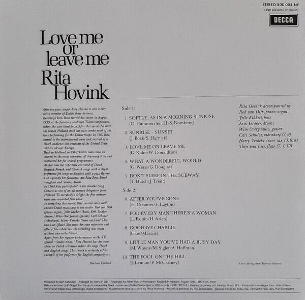 Recorded by Albert Kos at Phonogram Studio I, Hilversum, August 12th, 13th, 15th, 1969.