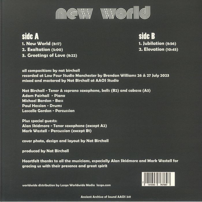Nat Birchall – Tenor, soprano saxophone, bells, cabasa